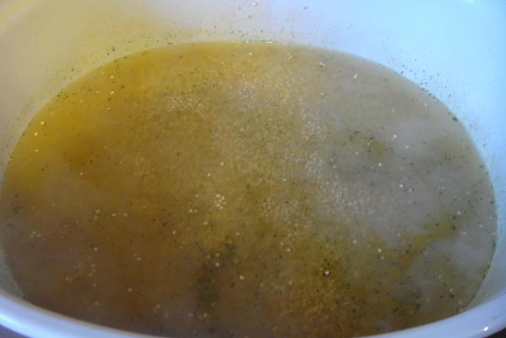 En una ollita pongan el consome a hervir, agreguen la quinoa